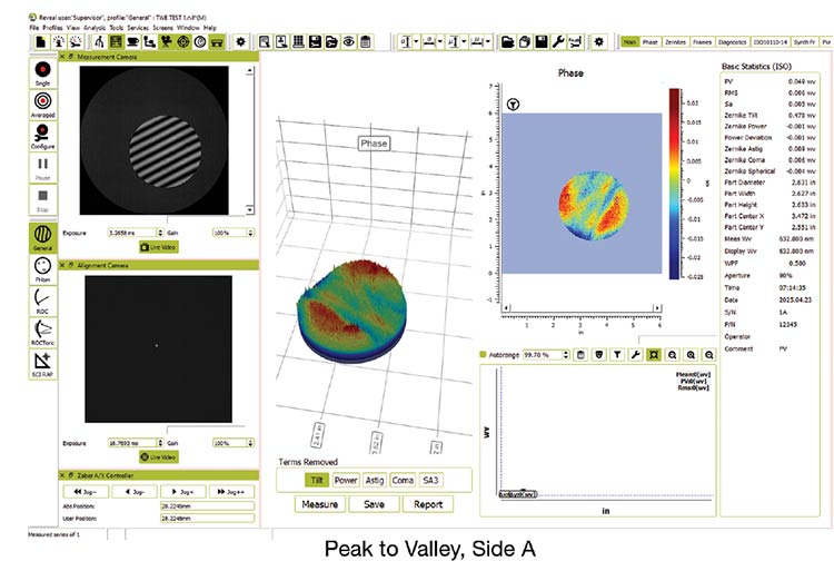 Figure 1 shows an optic that has complementing convex and concave surfaces, which is a typical feature of DSP. Figure 2 shows an optic with excellent flatness but poor TWE. Figure 3 shows an optic with both excellent flatness and inhomogeneity in the material.