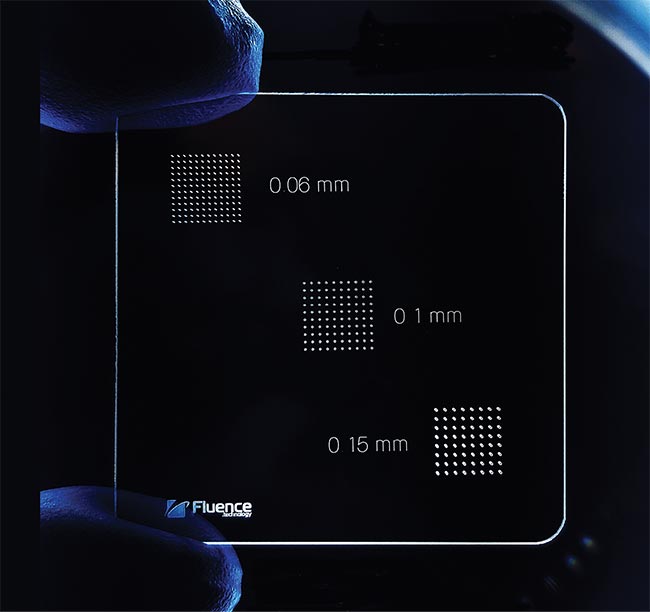 The pursuit of miniaturization and enhanced performance in microelectronics is placing unprecedented demand on the next generation of manufacturing technologies. As devices shrink and complexity grows, reliable, high-density interconnections are increasingly important to component and device design. Through-glass vias (TGVs), the microscopic pathways that enable electrical connections between layers in advanced semiconductor packages, are among the most critical components in microelectronics. Glass is steadily replacing silicon and organic substrates as the preferred substrate material, due to its advantageous thermal properties, lower costs, and superior performance for next-generation devices. However, this shift also heightens certain manufacturing challenges as conventional and established processes struggle to optimize efficiency and sustainability when they are implemented with/for glass. Courtesy of Fluence.technology. For glass, ultrafast laser processing stands out as the essential enabling technology, offering high speeds and precise control over via diameter and pitch while preserving the structural integrity of the glass wafer. Femtosecond lasers are rapidly gaining popularity in this context. These lasers offer ablation efficiency and quality benefits compared with nanosecond and picosecond laser sources. Current femtosecond sources are available with exceptional beam quality, parameter stability, and extended operational lifetimes as a result of recent advancements in ultrashort-pulse generation in fibers. Robust all-fiber modules limit the use of traditional free-space and degradable components, significantly enhancing laser system reliability and reducing maintenance requirements. A pivotal breakthrough relates to recent advancements in percussion drilling of high-aspect-ratio TGVs. Using ultrashort pulses with precisely controlled energy and timing, femtosecond laser technology is enabling process engineers and manufacturers to achieve what was once impossible: faster, cleaner, and more precise micromachining from a single step in support of next-generation electronics. A shifting landscape: From silicon to glass The transition from organic substrates and silicon interposers to glass represents one of the most significant material shifts in the history of microelectronics manufacturing. This change is driven by several factors, spanning both intrinsic material properties and broader trends shaped by the evolving trajectory of Moore’s law. Through-glass vias (TGVs) in borosilicate glass fabricated using a femtosecond laser bottom-up process. TGV diameters: 60 µm, 100 µm, and 250 µm. Courtesy of Fluence.technology. As it compares to silicon, glass offers numerous cost benefits, particularly for applications that require larger substrates or higher production volumes. This cost difference becomes increasingly important as devices become more complex. Additionally, glass exhibits superior thermal stability over silicon. Thermal management and tolerance are essential parameters for maintaining dimensional stability across operating temperatures. At the same time, glass exhibits a coefficient of thermal expansion that is similar to silicon die, making this combination of materials a perfect match for achieving high performance. On its own, glass allows more chips to be placed on larger substrates since the material is more rigid, flat, and stable than organic substrates. Glass also maintains structural integrity across wider temperature ranges than organic substrates. This expanded operating envelope enables devices to function reliably in challenging and extreme environments. And it offers a lower dielectric constant than many commonly used substrates. This translates to faster signal propagation and improved performance at high frequencies. Additionally, glass enables co-packaged optics and photonics integration on a chip. This important quality opens possibilities for advanced designs where a reduction of energy consumption is critical. Specific applications include high-performance compute, 5G communication, and Internet of Things and/or AI accelerators. Percussion drilling of 0.5-mm-thick Eagle XG glass. Taper-free holes are fabricated by depositing only 800 single femtosecond pulses/hole with varying pulse duration between 250 fs and 9 ps. Taper does not appear until a hole depth of ~450 µm is reached. Courtesy of Fluence.technology. Another advantage for microelectronics manufacturing exists: Glass allows for smaller hole diameters and lower spacing than organic substrates, thereby enabling denser connection patterns without compromising performance. This is vital while chip designs are growing ever more complex, and interconnection density is increasing in lockstep. The combination of these advantages makes glass an attractive option for use in next-generation microelectronics. But the material presents its own set of challenges for micromachining processes. When it comes to creating densely packed, high-aspect-ratio holes, these challenges are particularly dynamic. Creating high-aspect-ratio TGVs Creating microscopic holes in glass with high-aspect ratios requires fabricators and process engineers to overcome significant technical barriers. Traditional mechanical drilling methods lack necessary precision, while conventional laser approaches often produce tapered holes, micro-cracks, or other unwanted defects. The ideal TGV must meet several criteria. It must feature a small diameter, often 10:1. The fabricated TGV must also exhibit minimal, or, in some cases, zero taper; an absence of micro-cracks and/or heat-affected zones; and clean, precisely engineered edges. Critically, the TGV must also have a consistent, repeatable geometry. Current widely adopted methods for achieving these characteristics can necessitate complicated multistep processes. Processes such as selective laser etching, for example, involve ultrafast laser modification followed by chemical etc