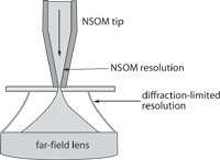 that analyzes the surface of a specimen by recording the intensity of light as it is focused through a pipette and raster scanned across the specimen at a distance less than a wavelength. The resolution and high contrast output of the near-field scanning optical microscope allows for the study of various properties of the specimen under observation including refractive index, local stresses, as well as chemical structures.