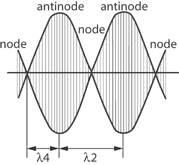 The combination of two waves having the same frequency and amplitude and traveling in opposite directions. Standing waves are indicated by a stationary set of nodes spaced one-half wavelength apart along the propagation direction of the waves.