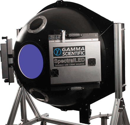 The SpectralLED tunable uniform light source for camera and image sensor calibration delivers superior spectral resolution and accuracy with higher brightness and a broader color gamut than any available halogen or LED-based source. It accomplishes this with 35 discrete LED channels, each having 16-bit resolution in intensity settings. This enables the SpectralLED to be programmed to produce output that closely matches virtually any illuminant source in a single instrument.