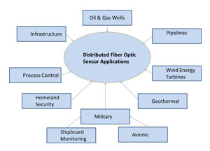 “Distributed fiber optic sensing systems fall into two categories: quasi-distributed (multipoint) systems and continuous systems. The technologies associated with these systems will be covered in detail, including Bragg grating and interferometric methods, as well as Raman, Brillouin and Rayleigh scattering. These sensing concepts can be used to measure strain, temperature, vibration, pressure, acoustic emission, electric and magnetic fields, chemical detection and other parameters. The availability of this sensor capability has been used in a range of applications including oil and gas exploration and extraction, industrial monitoring, homeland security and military surveillance, and smart structures.”