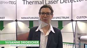 Product Manager Susanne Dröscher presents the latest product developments including an ultrafast laser power detector for average powers up to 50 W, the most compact thermal detectors on the market and a position sensitive device. All greenTEG power detectors are especially designed to meet the needs of OEMs.