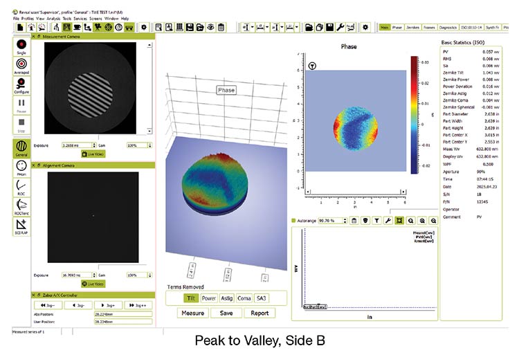 Figure 1. An optic with complementing convex and concave surfaces and excellent transmitted wavefront error (TWE), which is typical of double-sided polishing (DSP). Courtesy of Precision Glass & Optics.