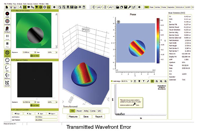 Transmitted wavefront error (TWE), on the other hand, considers the entire optical path through the component. This metric accounts for the surface figure of both the front and back surfaces, internal refractive index variations (also known as inhomogeneity), and thickness nonuniformity. Another benefit of specifying TWE, therefore, is that it enables verification of homogeneity.