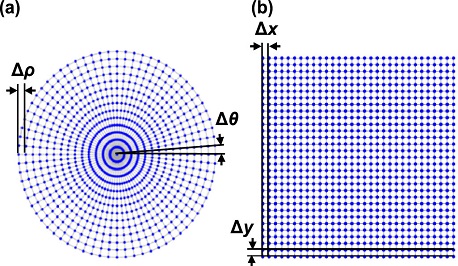Layouts of control point clouds generated by (a) the ring method and (b) the mesh method. Courtesy of the International Journal of Extreme Manufacturing (2022). DOI: 10.1088/2631-7990/ac5f12.