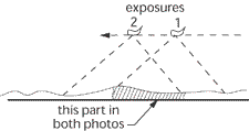The creation of topographical maps and charts from a stereographic record produced through the overlapping of consecutive aerial photographs by more than 50 percent.